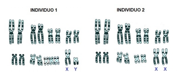 En un laboratorio se estudiaron los cariotipos de dos individuos de una misma especie de mamífero. A partir de las imágenes de estos cariotipos, indicar cuál de las afirmaciones es correcta: