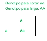 Las patas traseras de los grillos pueden ser largas (carácter dominante) o cortas (carácter recesivo). La descendencia entre un macho pata corta y una hembra pata larga homocigota: