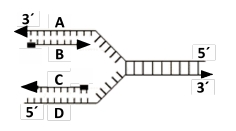 En la siguiente afirmación elegí la opción que incluya los dos términos con los cuales completarías los espacios con líneas punteadas: "Durante la transcripción del ADN, la molécula resultante se sintetiza en sentido ………….. a partir de una secuencia llamada ………."