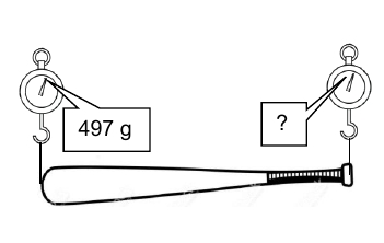 Los extremos de un bate de béisbol de 130 centímetros de longitud y 750 gramos de masa cuelgan de un par de balanzas, tal como lo describe la figura.