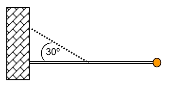Un mástil de 4 metros de largo se encuentra articulado a una pared y es mantenido de manera horizontal por una cadena que, desde su parte media, lo vincula con la pared según se muestra en el esquema. El mástil es homogéneo y en su extremo derecho posee una esfera de bronce.